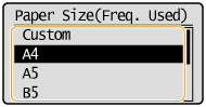 You can set the machine to display only frequently used paper sizes in the selection screen.