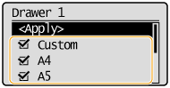 Uncheckmarked paper sizes are displayed in the <Paper Size (Other Sz.)> screen.