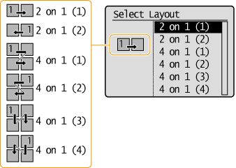 You can copy two or four documents onto a single sheet at a reduced size. This decreases the number of pages, enabling you to save paper.