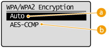 .![]() <Auto>Sets the machine to automatically select AES-CCMP or TKIP to match the setting of the wireless router.