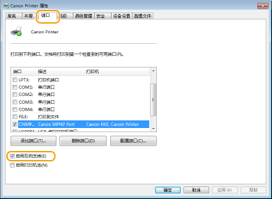 在 [端口] 选项卡中,确定选中 [启用双向支持] 复选框。