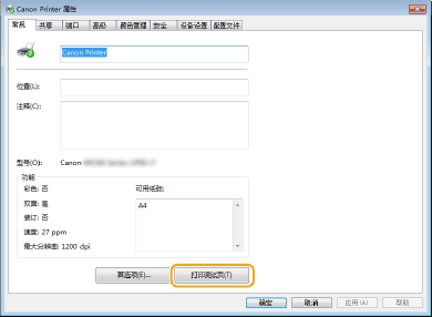 在 [常规] 选项卡中单击 [打印测试页]。