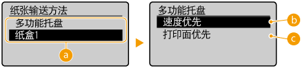 纸张),则 <速度优先> 将应用到供纸器。在此情况下,需要按照与选择 <速度优先> 时相同的方式装入纸张(