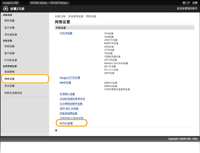如果想要禁用 AirPrint 或加密通信不准备使用的功能,请使用操作面板或远程用户界面配置必要设置。