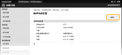 要更改 AirPrint 设置,请以系统管理员模式登录。