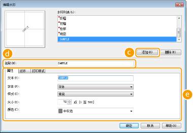 单击各选项卡指定水印的文本、颜色或打印位置。更多信息,请单击打印机驱动程序画面上的 [帮助]。