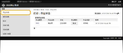 如果您以系统管理员模式登录,将列出当前打印和等待打印的所有打印文档。 如果以常规用户模式登录时输入了您的用户名,则打印的文档上将只显示您的用户名。 在暂停文档上单击 [作业编号] 显示详细信息。可以检查用户名和打印文档的页数。 |