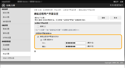 选择 [使用远程用户界面访问PIN] 复选框并设置 PIN。