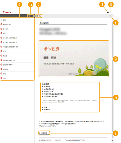 使用者指南分割成不同的畫面,各畫面內容不同。