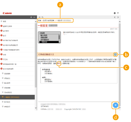 按一下以指定文字大小、版面配置和使用者指南顯示方法等設定。
