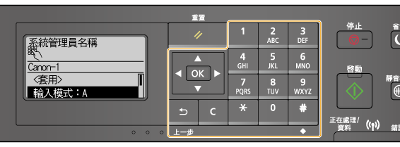 切換輸入的文字類型。目前所選文字類型以 <輸入模式> 的「A」、「a」或「12」顯示。