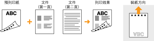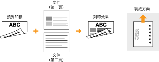 本節主要介紹如何以正確面和方向放入預列印紙。有關在紙匣或手動送紙槽中放入紙張的一般步驟說明,請參閱將紙張裝入紙匣或在手動送紙槽中裝入紙張。