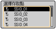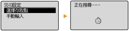 安全設定如果透過選擇無線路由器設定無線連線,WEP 認證方法設定為 <開放式系統>,而 WPA/WPA2 加密方法設定為 <自動>(AES-CCMP 或 TKIP)。若要將 WEP 認證選擇為 <共用鍵值>,或是將 WPA/WPA2 加密選擇為 <AES-CCMP>,必須使用手動輸入方法設定連線(指定詳細設定以設定連線)。