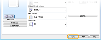 可點選的使用者介面您可以在預覽影像上輕鬆直覺地指定版面配置、裝訂位置等。有關詳細資訊,請按一下印表機驅動程式畫面上的 [說明]。
