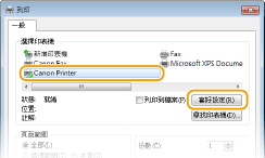 選擇本機的印表機驅動程式,然後按一下 [喜好設定] 或 [內容]。
