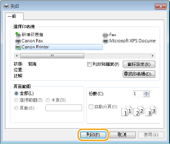 列印對話方塊的顯示方式因各個應用程式而異。有關詳細資訊,請參閱所用應用程式的使用說明手冊。