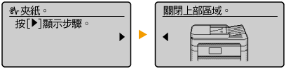 以顯示簡易的解決方式。如果畫面上的程序難以理解,請參閱下列章節清除卡紙。