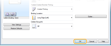 Clickable UIYou can easily specify the page layout, binding position, etc. intuitively on the preview image. For more information, click [Help] on the printer driver screen.