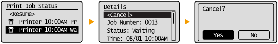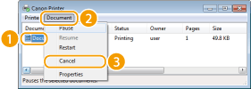 Canceling from the Remote UIYou can cancel printing from the [Job Status] page on the Remote UI: Checking Current Status of Print Documents
