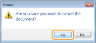 Canceling from an applicationOn some applications, a screen like shown below appears. You can cancel printing by clicking [Cancel].