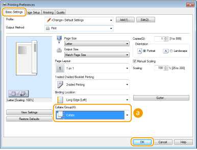 When printing copies of multi-page documents, select [Collate] to print complete sets in sequential page order. This function is useful when preparing handouts for meetings or presentations.