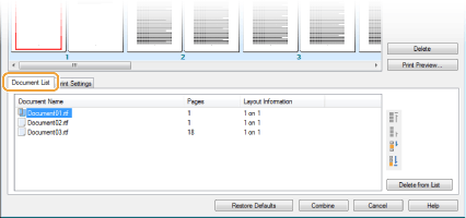 Click the [Document List] tab to display the documents added in steps 1 to 4. You can remove documents by selecting them in the list and clicking [Delete from List].
