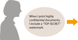 Specify "TOP SECRET" for a watermark and register it as a "Profile." Just select this "Profile" when you need it. Registering Combinations of Frequently Used Print Settings