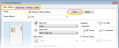 Specifying combinations of settings such as "1-sided landscape orientation on A4 size paper" every time you print may be time consuming. If you register these frequently used combinations of print settings as "profiles," you can specify printing settings simply by selecting one of these profiles from the list. This section describes how to register profiles and how to print using them.