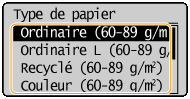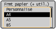 Vous pouvez régler l'appareil afin qu'il affiche uniquement les formats de papier fréquemment utilisés dans l'écran de sélection.