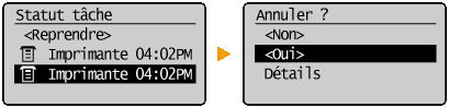 Annulation à partir de l'IU distanteVous pouvez annuler l'impression dans la page [Statut tâche] de l'IU distante : Vérification de l'état actuel des documents d'impression