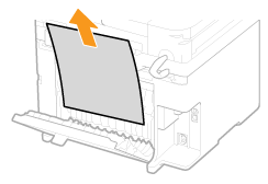 Retirez doucement le document ou le papier coincé de l'appareilLe retrait en force du papier risque d'endommager des pièces. Si vous ne parvenez pas à enlever le papier, contactez votre revendeur agréé Canon ou composez le numéro d'assistance téléphonique de Canon.
