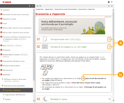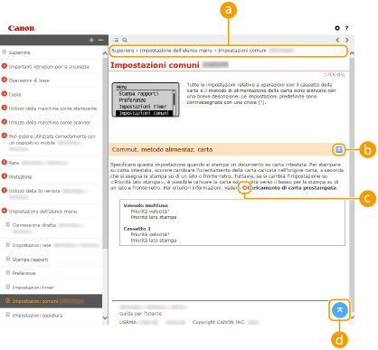 Fare clic per selezionare impostazioni quali dimensione del testo, layout e metodo di visualizzazione per la Guida per l'utente.