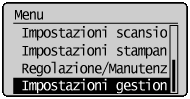 Impostazioni timer Impostazioni comuni*3 Impostazioni copiatura Impostazioni scansione Impostazioni stampante Regolazione/Manutenzione Impostazioni gestione sistema Inizializza tutto |