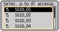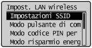 Selezionare <Impostazioni SSID>, quindi premere