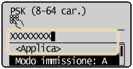 Immettere la chiave di rete utilizzando i tasti numerici, selezionare <Applica> e premere