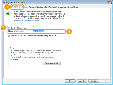 Per ottenere le informazioni sul dispositivo quando si utilizza un server di stampaDurante l'installazione del driver stampante, è necessario aggiungere Canon Driver Information Assist Service. Per ulteriori informazioni, vedere "Guida di installazione MF Driver".