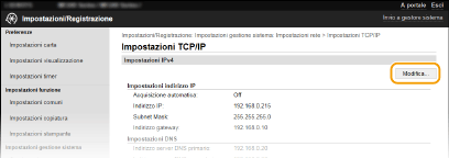 Fare clic su [Modifica] in [Impostazioni IPv4].