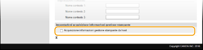 Specificare le impostazioni di acquisizione delle informazioni di gestione stampante.