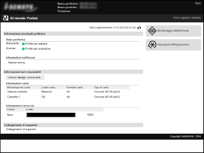 È possibile verificare lo stato dei documenti o della macchina e modificare anche alcune delle impostazioni. Se si desidera eliminare i documenti di stampa, immettere il nome utente dei documenti in [Nome utente]. Il nome utente viene automaticamente impostato sui documenti di stampa in base a informazioni come nome computer o nome di accesso al computer.