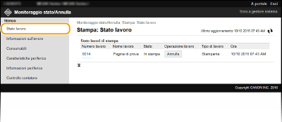 È possibile eliminare un lavoro facendo clic su [Annulla].