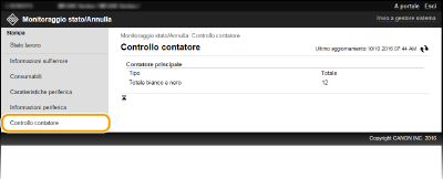 Viene visualizzato il numero totale di pagine stampate dalle funzioni di stampa e copia.