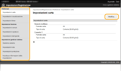 La modifica di alcune impostazioni richiede prima l'accesso in modalità Gestore sistema.