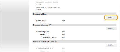 Fare clic su [Modifica] in [Impostazioni Proxy].
