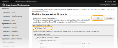 Selezionare la casella di controllo [Utilizzo TLS] e fare clic su [OK].