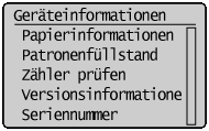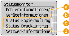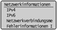 Diese Option zeigt die Netzwerkeinstellungen, wie die IP-Adresse des Geräts, und den Status, wie den Zustand der Wireless LAN-Kommunikation.