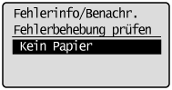 In manchen Fällen werden bei einem Problem Anweisungen angezeigt, wie auf das Problem reagiert werden soll. Befolgen Sie zum Beheben des Problems die Bildschirmanweisungen. Im Folgenden sehen Sie als Beispiel den Bildschirm, der bei einem Papierstau angezeigt wird (