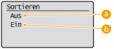 Setzen Sie <Sortieren> auf <Ein>, um beim Erstellen mehrerer Kopien mehrseitiger Dokumente die Kopien in Seitenreihenfolge zu sortieren. Diese Funktion ist nützlich, wenn Sie Arbeitsblätter für Besprechungen oder Präsentationen vorbereiten.
