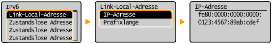 anzeigen. Drücken Sie <Netzwerkinformationen> <Netzwerkverbindungsmethode>, und wählen Sie die anzuzeigende Einstellung. |