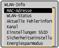 <WLAN-Status> und <Aktuelle Fehlerinformationen> können Sie über