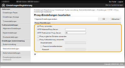 Aktivieren Sie das Kontrollkästchen [Proxy verwenden], und legen Sie die erforderlichen Einstellungen fest.